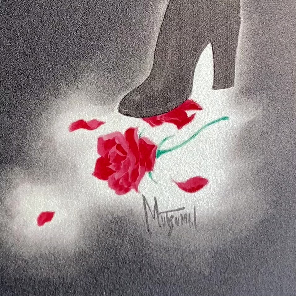 Mutsumi Inomata’s gold-foil signature in the bottom right corner adds a distinctive sense of luxury. For the Platinum Edition, the piece is presented in a thick silver frame with a black mat, giving the work a weighty and refined presence.